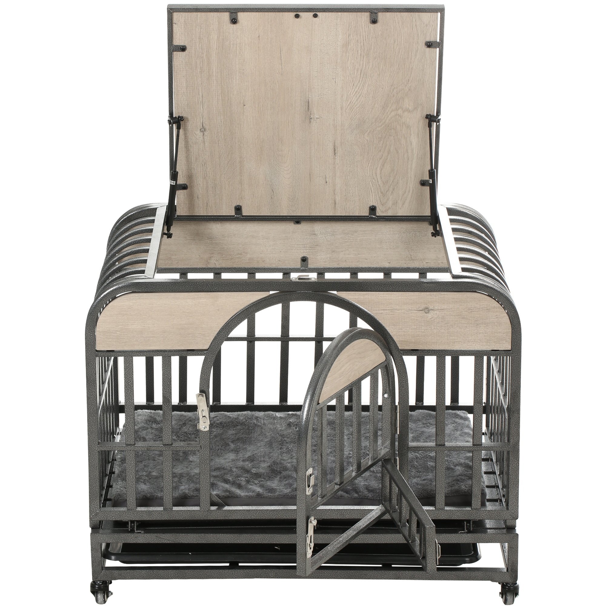 46in Heavy Duty Dog Crate, Furniture Style Dog Crate with Removable Trays and Wheels for High Anxiety Dogs