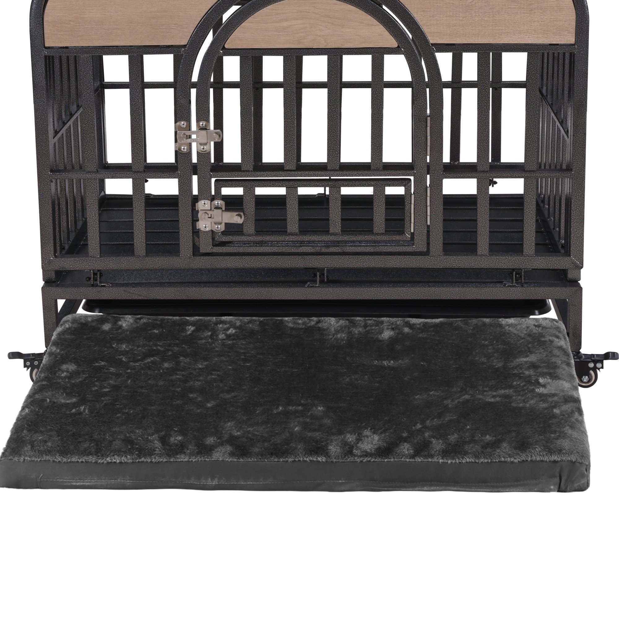 Home > 46in Heavy Duty Dog Crate, Furniture Style Dog Crate with Removable Trays and Wheels for High Anxiety Dogs