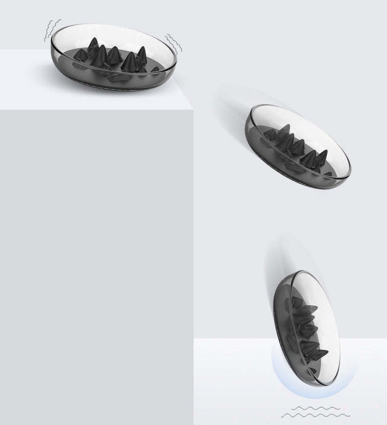 The Pet Life ® 'Cirlicue' Shark Fin Shaped Modern Slow Feeding Pet Bowl is composed of High-Grade Thick and Durable clear transparent plastic material that is harder to break, easy to wash and dishwasher safe. The bottom interior of the bowl features a removable and insertable unique Rubber-like bendable Silicone and TPR Material with shark-fin inspired shapes and ridges that creates a slow feeding experience that helps ease digestion. The bowl features a modern tilted-edge design for less neck stress and reach-over. The Shark-Finned and peel-off TPR insert make it easier and convenient to clean out grease and grime without any crevices. Reversed with curved rubberized grips for heavy-duty traction. Available in Multiple Colors.